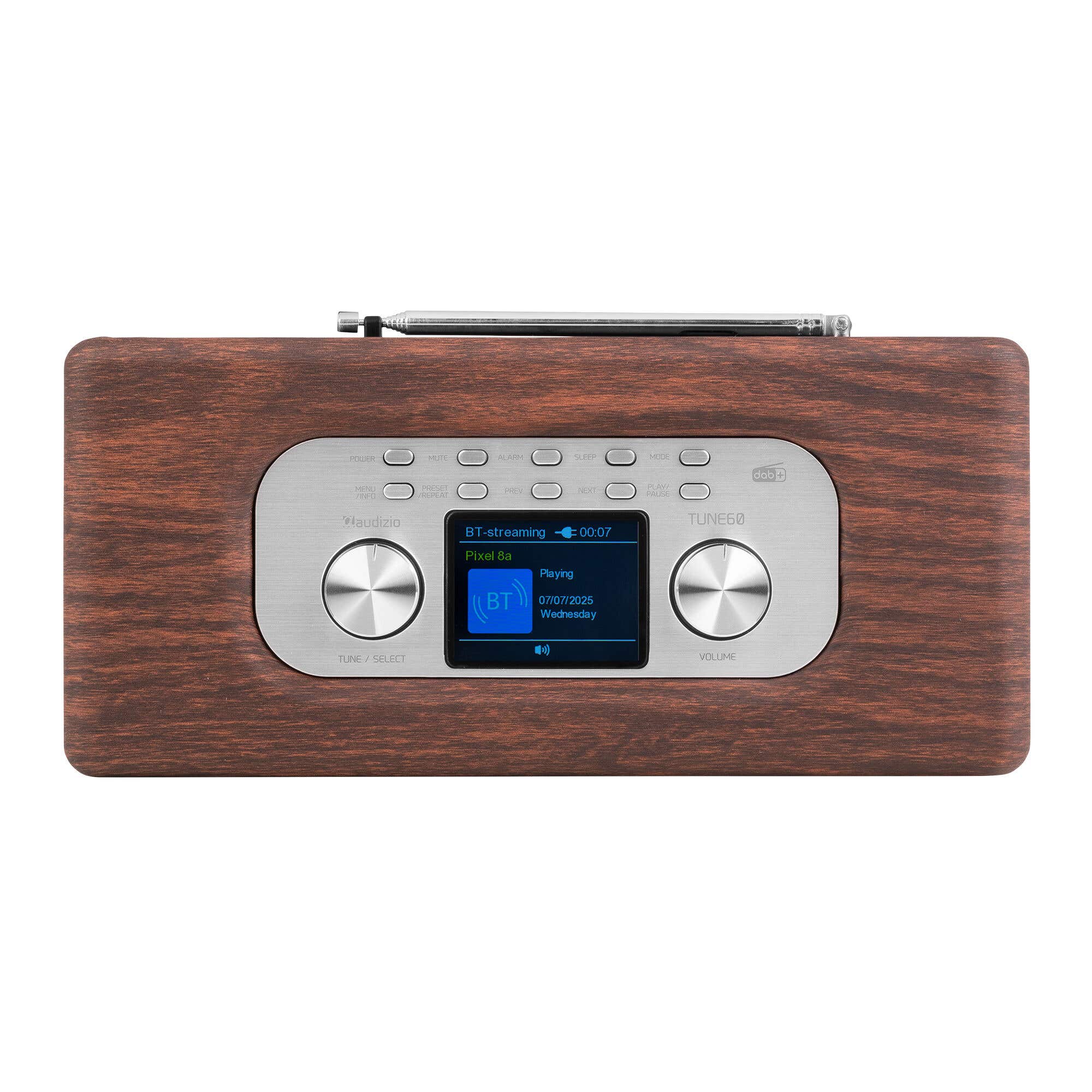 Neben DAB+ und FM können Sie das Radio auch mit Bluetooth verbinden. So können Sie auch Ihre Lieblingsmusik über Spotify oder YouTube genießen, Podcasts hören oder neue Hörbücher entdecken. Ganz gleich, welche Audioinhalte Sie auf diesem Retro-Radio abspielen, Sie können sich auf einen klaren und vollen Klang verlassen. Das Tune60-Radio von Audizio ist nämlich mit einem Zwei-Wege-Lautsprechersystem ausgestattet, zwei separate Lautsprecher sorgen für tiefe und hohe Töne.