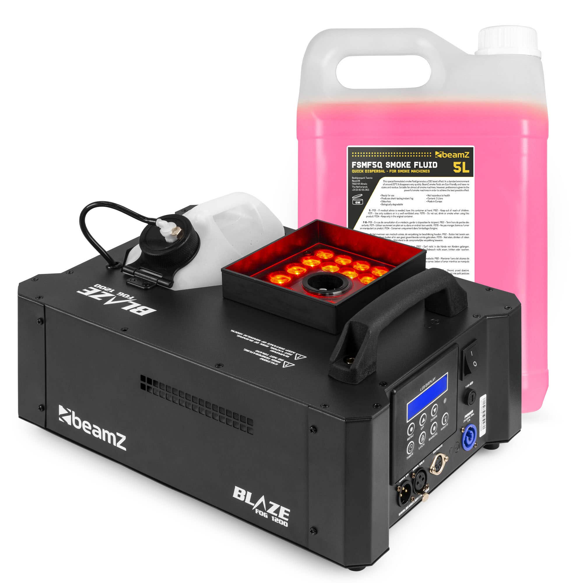 Professionelle Nebeleffekte auf Ihrer nächsten Party! Mit diesem BLAZE1800 Set von BeamZ erhalten Sie eine Nebelmaschine mit beeindruckenden Effekten. Die BLAZE1800 ist bekannt für ihre starke Leistung. Mit seiner 1800W Leistung kann er einen 350m³ großen Raum pro Minute mit Nebel füllen. Darüber hinaus erzeugen die 24 eingebauten RGBA-LEDs in Kombination mit der Nebelausgabe ein visuelles Spektakel. Mit diesem Farbmodell kann praktisch jede Farbe erzeugt werden. Die BLAZE1800 benötigt nur 4 Minuten, um sich von einem Kaltstart aufzuwärmen und produziert nach 35 Sekunden Aufwärmzeit Nebelfahnen mit voller Leistung! Eine 5-Liter-Menge CO2-Flüssigkeit ist in diesem Set enthalten. Dieser Nebel verschwindet fast augenblicklich und ist daher sehr gut für den Einsatz auf (Indoor-)Festivals und in Clubs geeignet. Ideal für den Einsatz auf dem Höhepunkt/Drop eines Songs oder um einen anderen Höhepunkt einer Show zu betonen. Ihr Publikum wird von der beeindruckenden Leistung der BLAZE1800 Nebelmaschine begeistert sein.