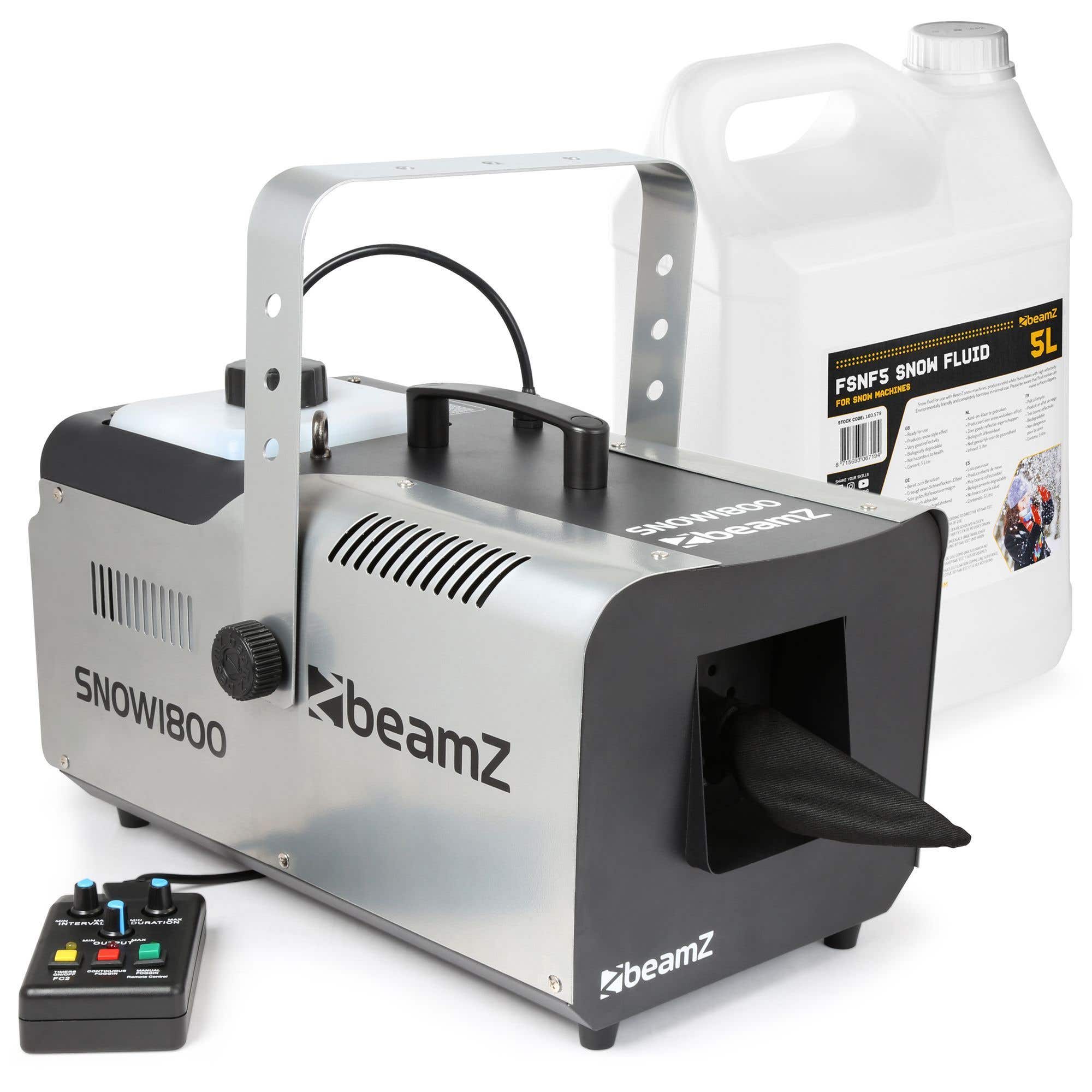 Eine weiße Weihnacht, das ist und bleibt das Schönste. Leider passiert das nicht oft, aber das kann sich ändern. Mit dem BeamZ SNOW1800 können Sie einen schönen Schneeregen erzeugen, so dass Sie immer die richtige Weihnachtsatmosphäre genießen können. Das Gerät ist mit einem sehr leistungsstarken Gebläse ausgestattet, das den Schnee über eine Fläche von mehreren Metern aufwirbelt, und wird mit einem flüssigen Schneekonzentrat geliefert. Die Bedienung ist mit der mitgelieferten Fernbedienung mit Intervalltimer sehr einfach, so dass Sie die volle Kontrolle über Ihre Schneedusche haben.
