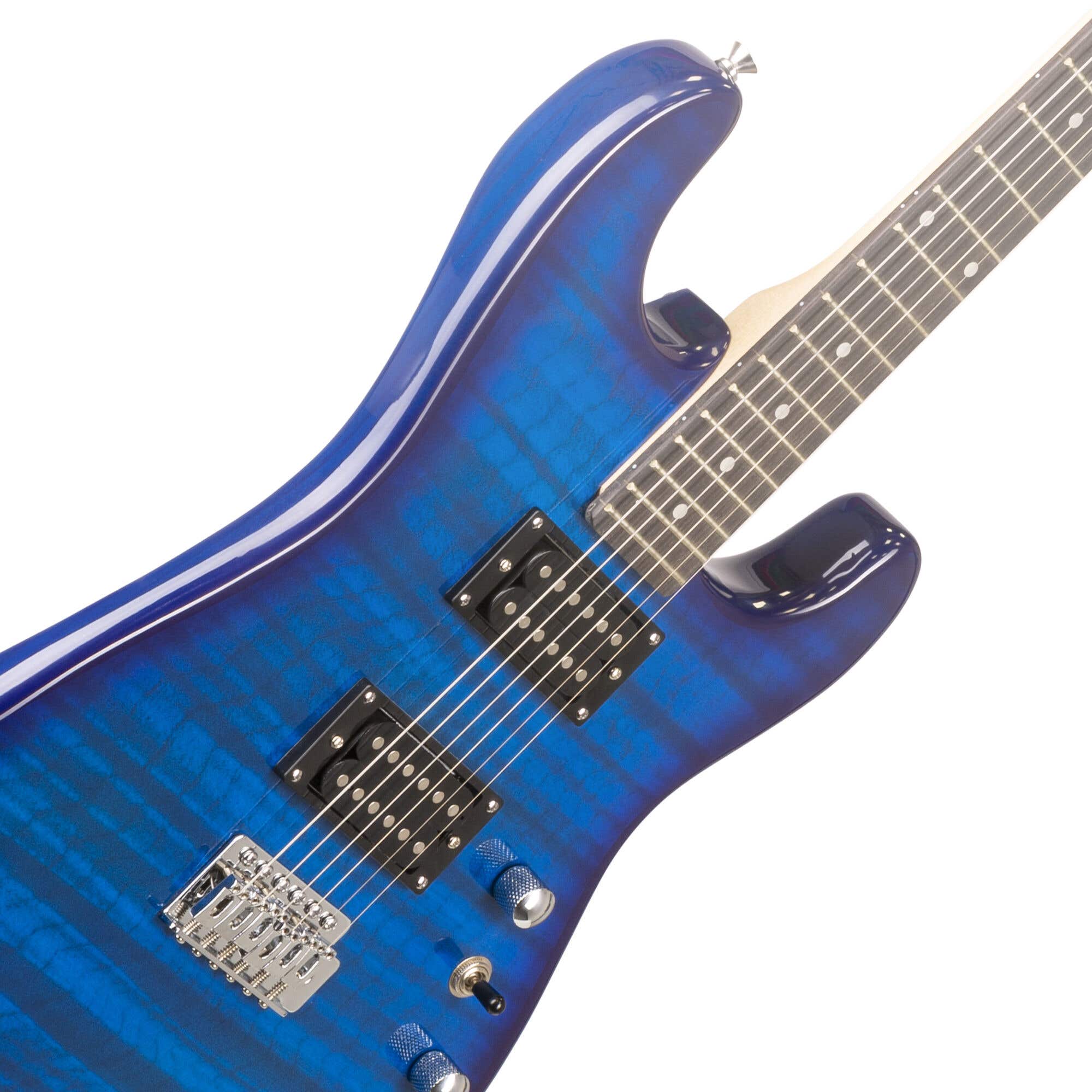 Die Superstrat-Gitarre im MAX GigKit-Paket hat einen Korpus aus Limone mit einer auffälligen geflammten Ahorndecke. Der Hals aus hartem Ahorn sorgt für geschmeidige Bespielbarkeit, während das palisanderfarbene Griffbrett satte Klangfarben ermöglicht. Egal, ob Sie in einer Rockband solide Riffs spielen oder warme Blues-Töne bevorzugen, die MAX GigKit Superstrat ist für eine Vielzahl von Stilen bestens geeignet. Dieses Gitarrenmodell bietet also Vielseitigkeit und passt sich mühelos an verschiedene Musikrichtungen an.