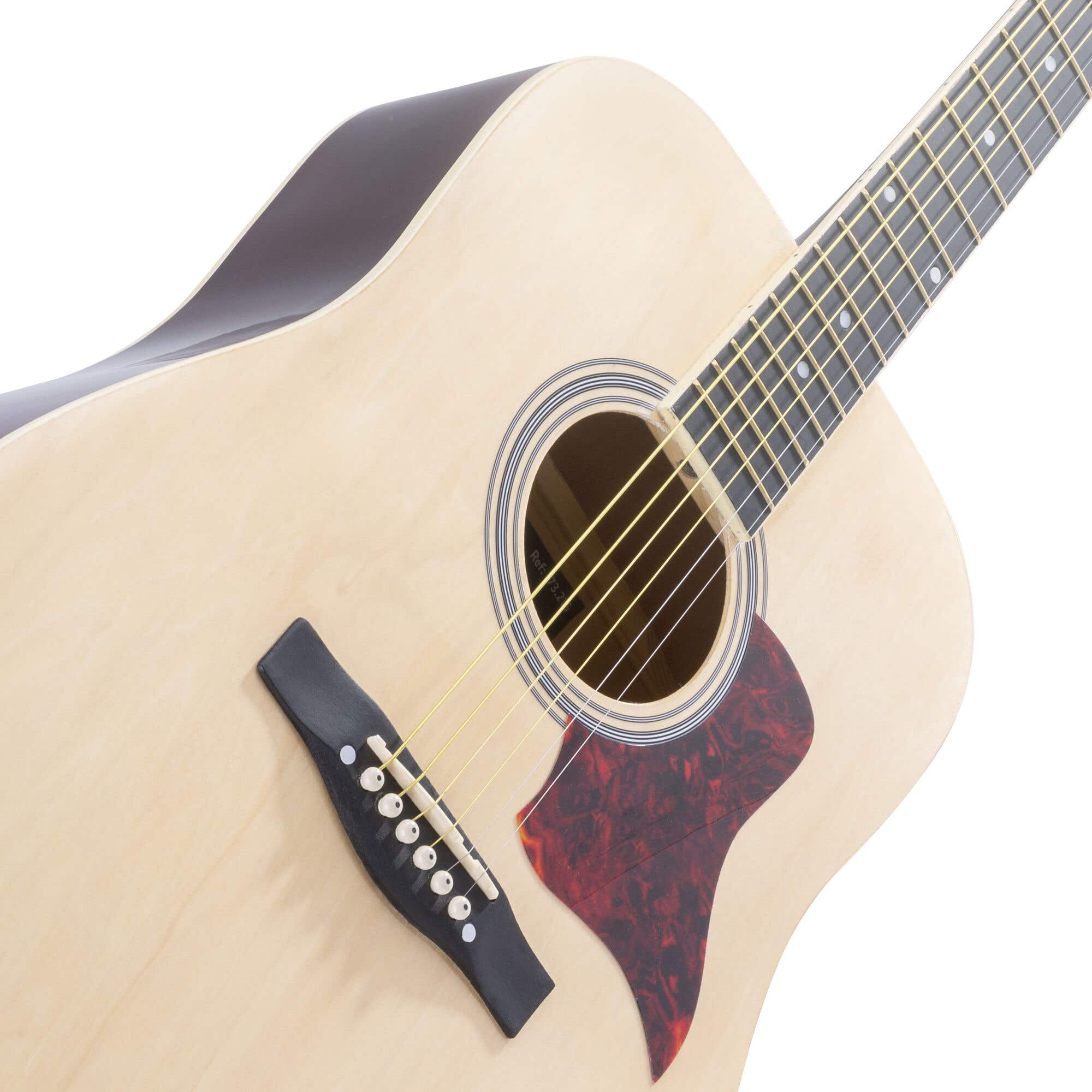 Natürlich fehlt es diesem Set an nichts Praktischem. Zum Beispiel ist eine Gitarrentasche für den sicheren und einfachen Transport der Gitarre enthalten. Außerdem ist ein digitales Clip-On-Stimmgerät dabei, mit dem Sie die Gitarre ganz einfach stimmen können. Darüber hinaus sind Plektren, ein Gitarrengurt und ein Satz Ersatzsaiten enthalten. Mit all diesem Zubehör steht Ihnen nichts mehr im Wege, um sofort loszulegen und schon bald die Sterne vom Himmel zu spielen.