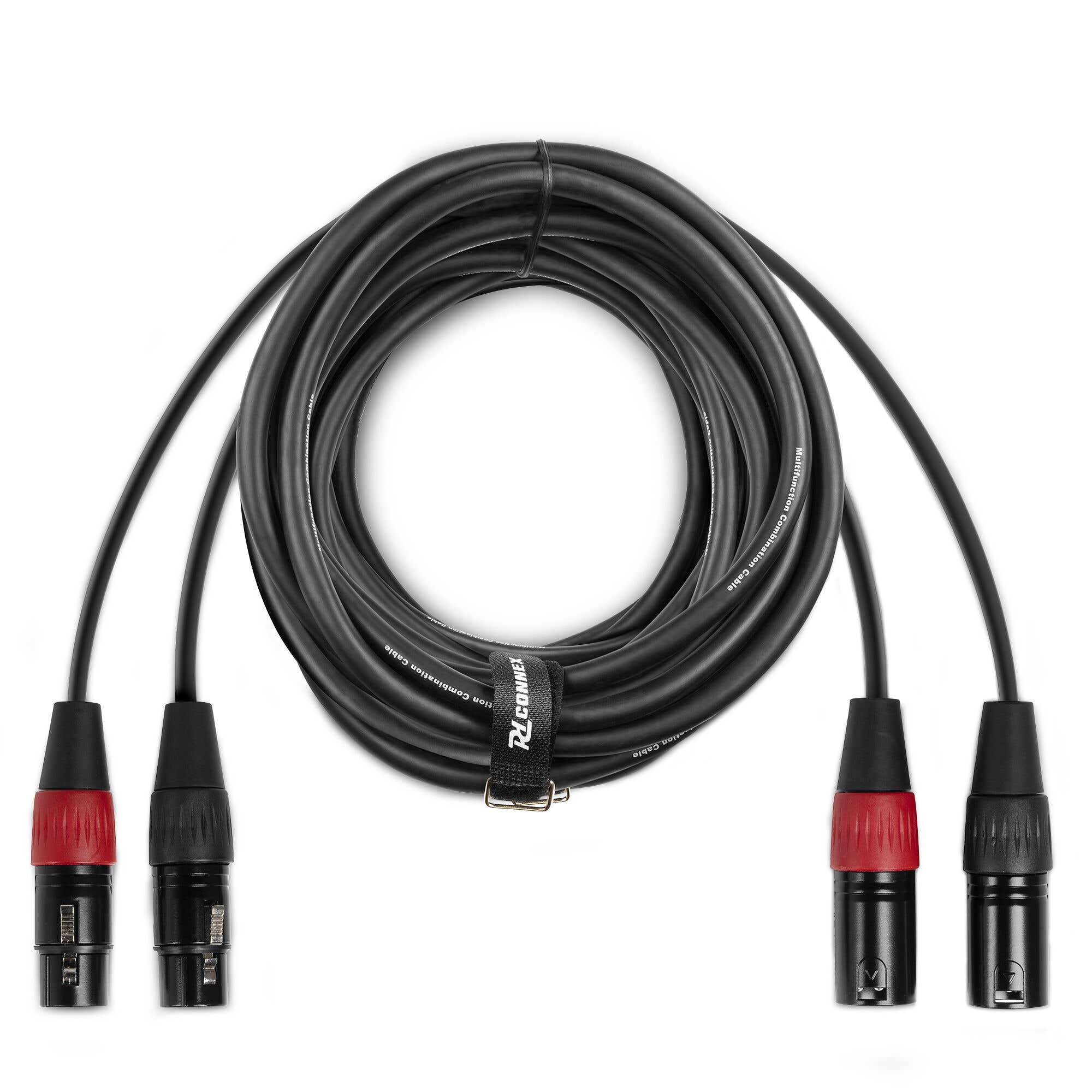 PD Connex professionelles hochwertiges 0,5 Meter balanciertes 2x XLR (M) - 2x XLR (F) OFC-Signalkabel. Dieses hochflexible Signalkabel ist mit hochwertigen XLR-Metallsteckern ausgestattet und garantiert eine störungsfreie und zuverlässige Signalübertragung. Ausgestattet mit Kabelbinder.